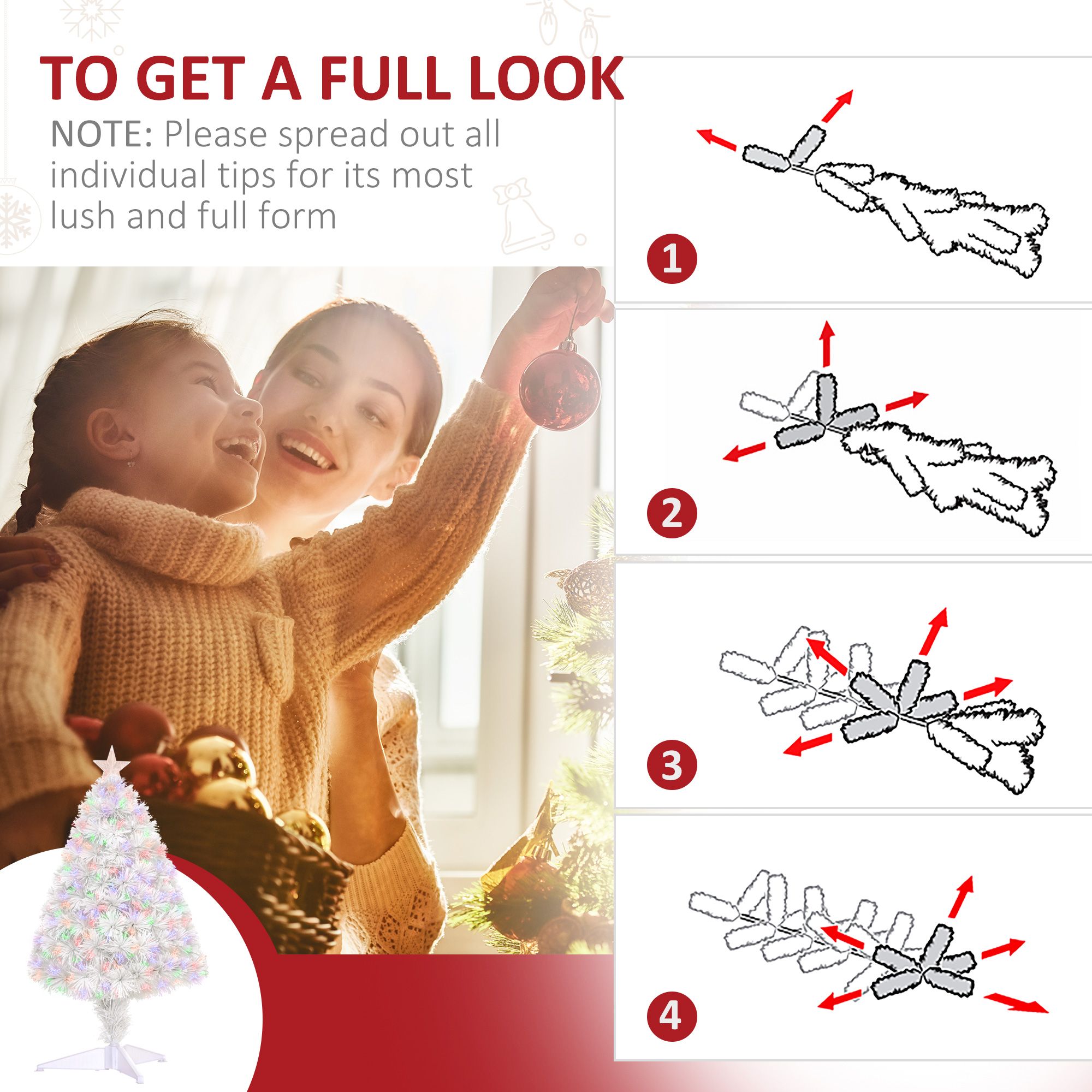 2.5FT Prelit Artificial Tabletop Christmas Tree With Fibre Optics Holiday Home Xmas Decoration For Table And Desk White