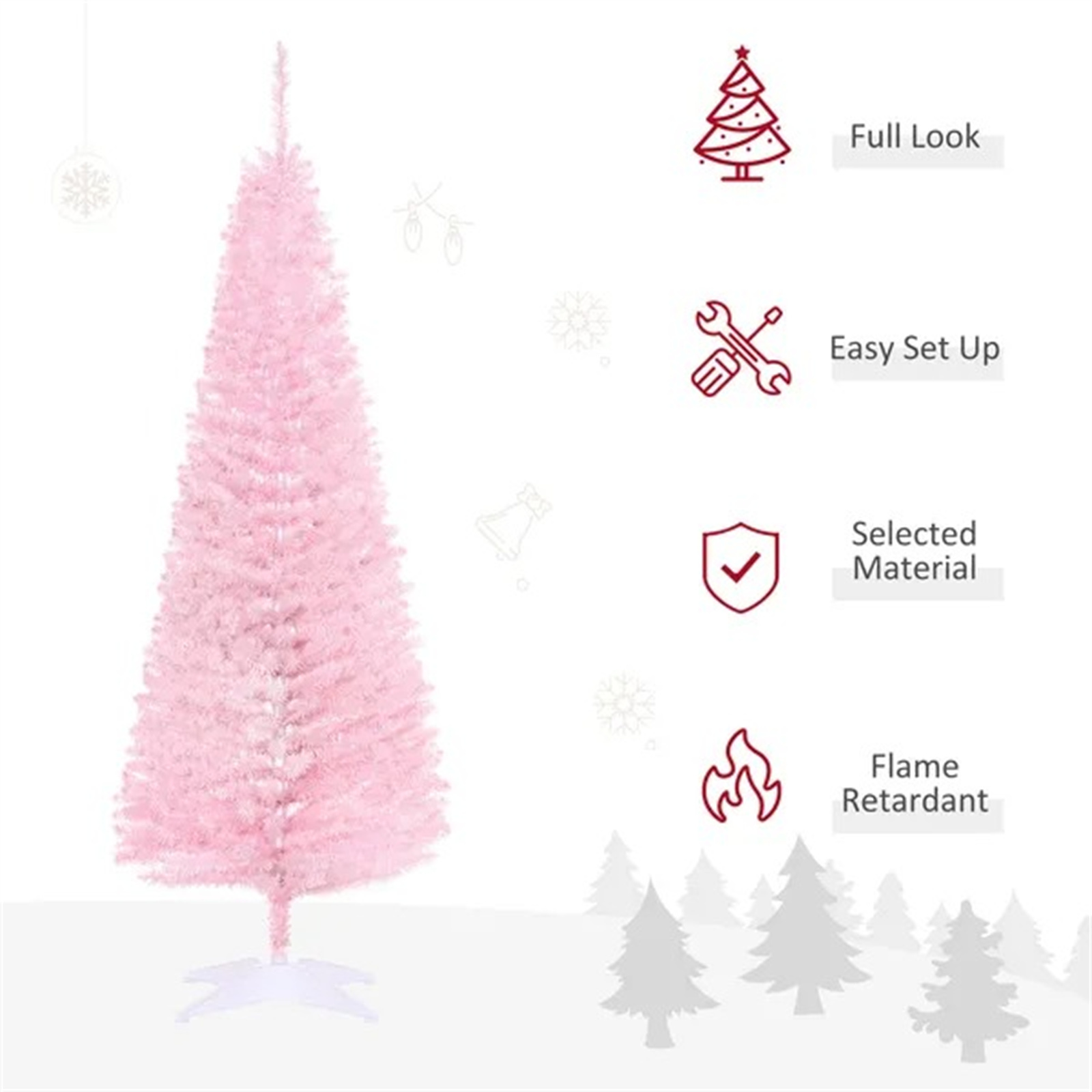 5FT Artificial Christmas Tree, Pencil Christmas Tree With Realistic Branches, Stable Stand