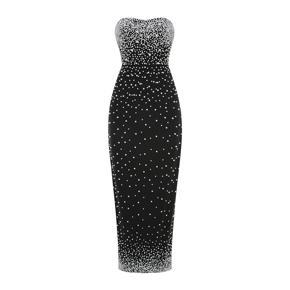 Fashion Bead Tube Top Bandage One-piece Dress Elegant Graceful Dinner Party