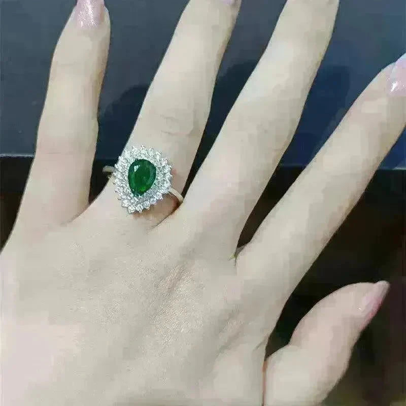 INS Trendy herzförmige Smaragd-Wasserabfall-Ring Voll Diamant