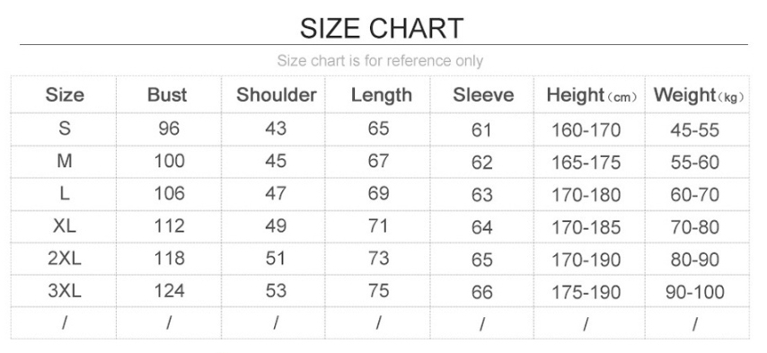 1. Asiatische Größen sind 1 bis 2 Größen kleiner als Europäer und Amerikaner. Wählen Sie die größere Größe, wenn Ihre Größe zwischen zwei Größen liegt. Bitte erlauben Sie 2-3 cm Unterschiede aufgrund der manuellen Messung. 2. Bitte überprüfen Sie die Größentabelle sorgfältig, bevor Sie den Artikel kaufen. Wenn Sie nicht wissen, wie Sie die Größe auswählen sollen, wenden Sie sich bitte an unseren Kundenservice. 3. Wie Sie wissen, zeigen die verschiedenen Computer die Farben unterschiedlich an. Die Farbe des tatsächlichen Artikels kann geringfügig von den folgenden Bildern abweichen.