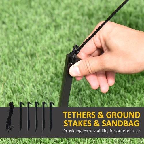 - Mild Wind or Rain? No Problem: For those more temperamental Halloweens, you're still going to want to scare the pants off your neighbors. Included five stakes, three drawstrings, and two sandbags to keep your inflatable from turning into a parachute in the almost-likely event of a windy night.