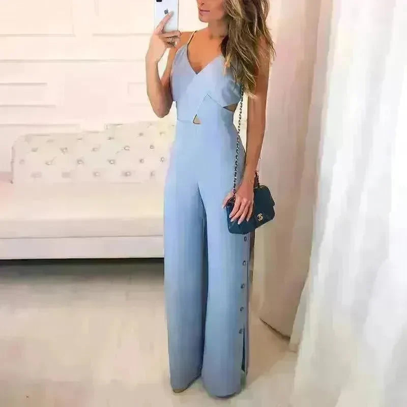 SLeeveless Hollow-out Camisole High Waist Slim Solid Color Jumpsuit