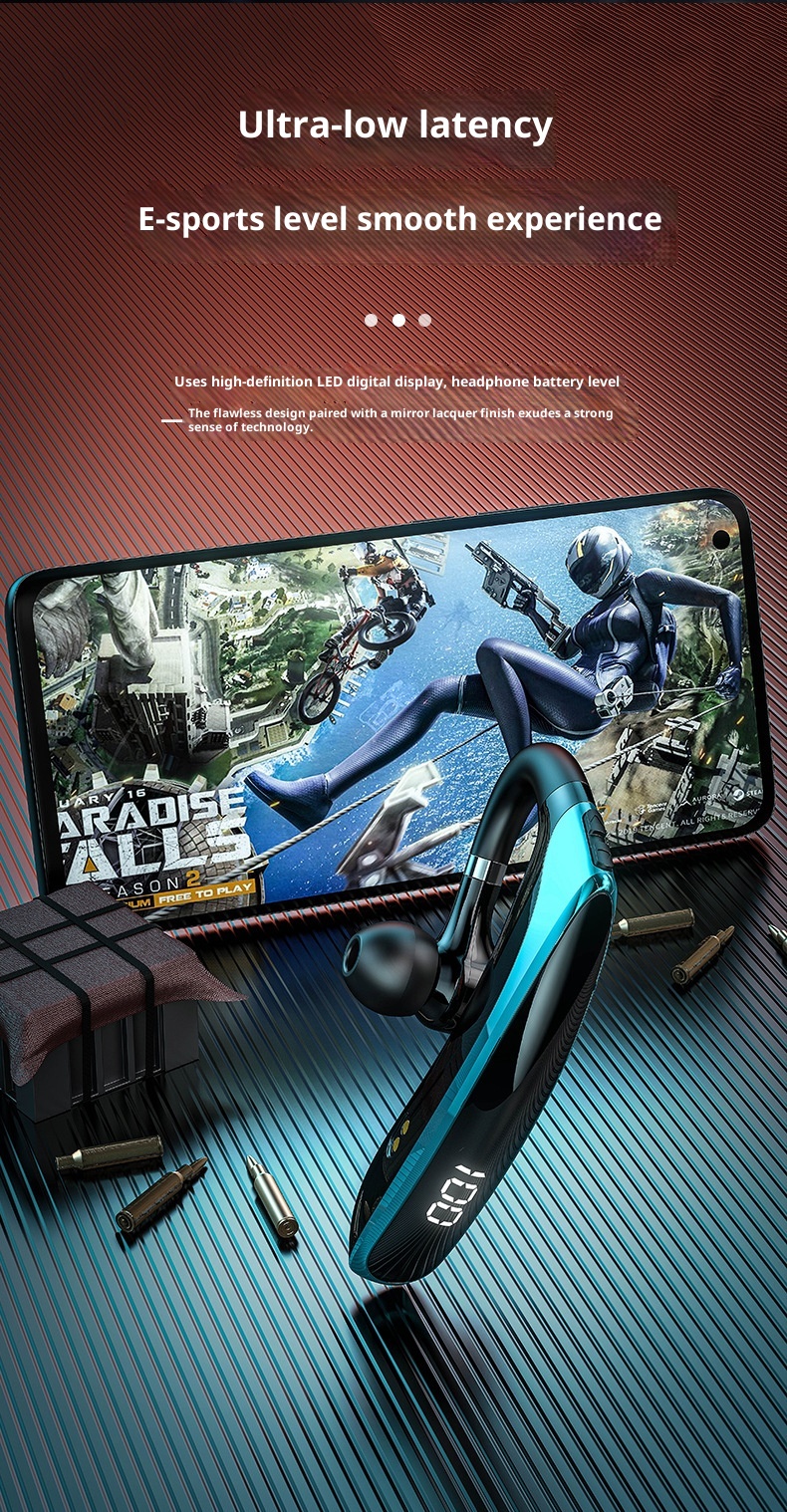 New Digital Display Ear-mounted Single-ear Ultra-long Life Battery In-ear Bone Conduction Sports Wireless Bluetooth Headset