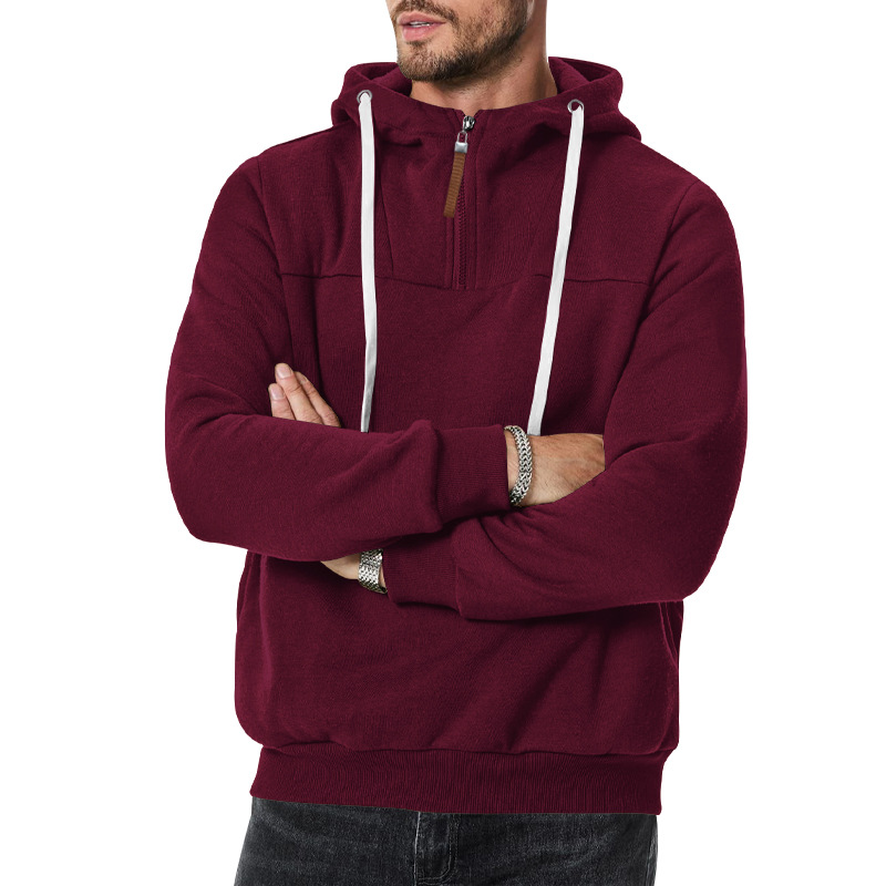 New Men's Heavy Fleece-lined Half-zip Sporty Casual Hooded Sweatshirt