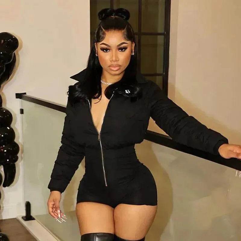 Cotton-padded Stretch Tight Jumpsuit Slim Short Jacket