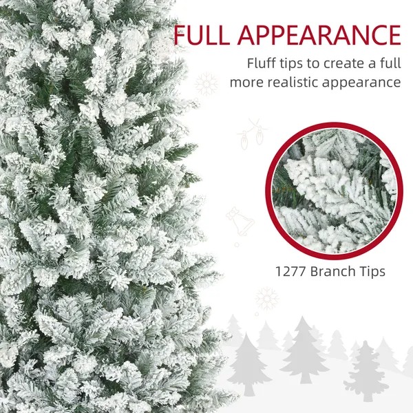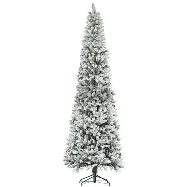 9ft Pencil Christmas Tree, Flocked Tree With 1277 Branch Tips And Metal Base For Home, Indoor, Holiday