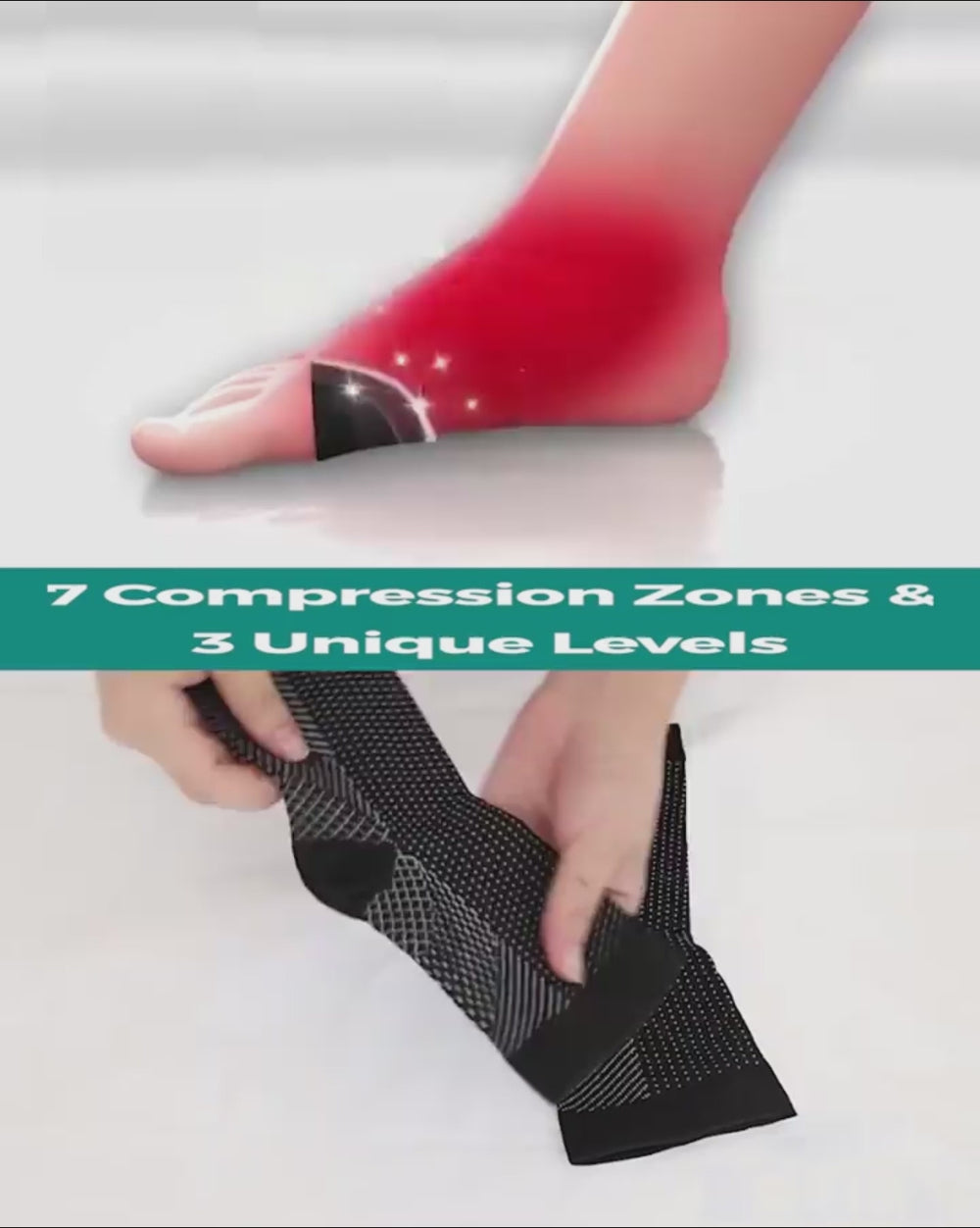 Mangas de pie de compresión con soporte de arco y tobillo.