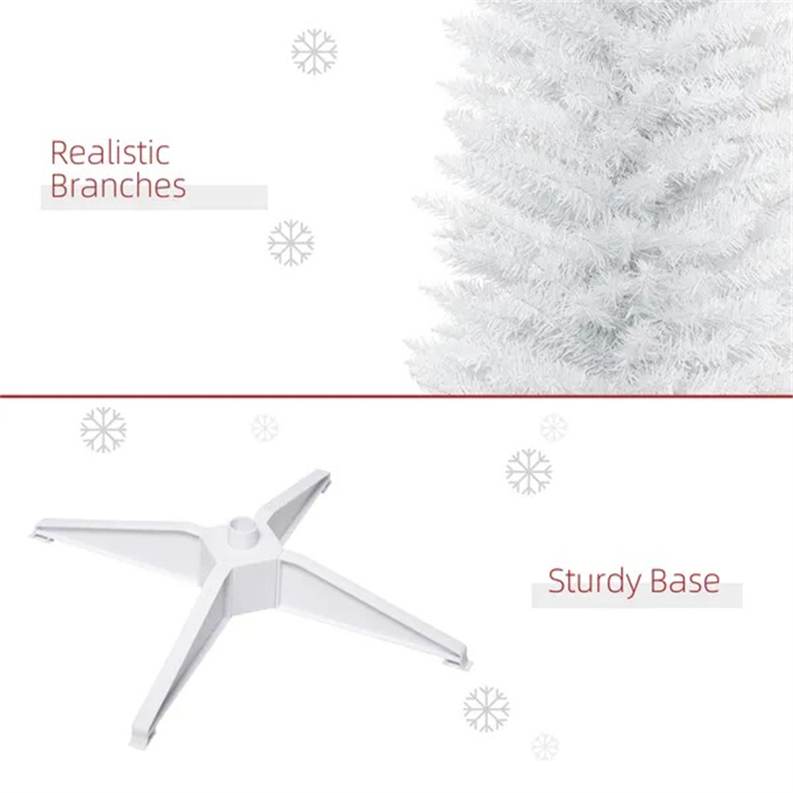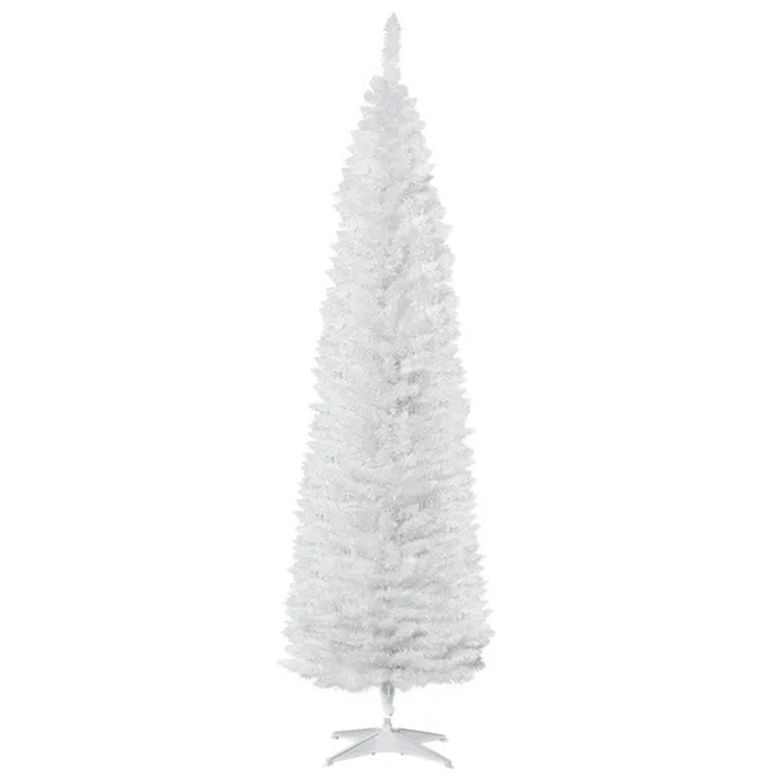 7' Pencil Christmas Tree, Slim Artificial Xmas Tree With Realistic Branches, Sturdy Metal Stand, White