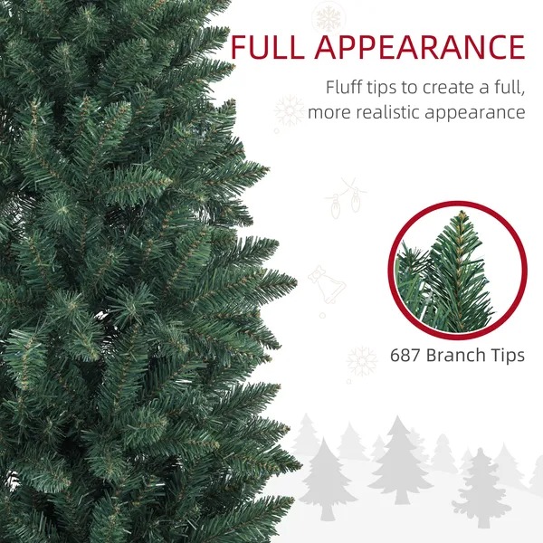 7ft Tall Pencil Artificial Christmas Tree With 687 Branch Tips With Steel Base, Green