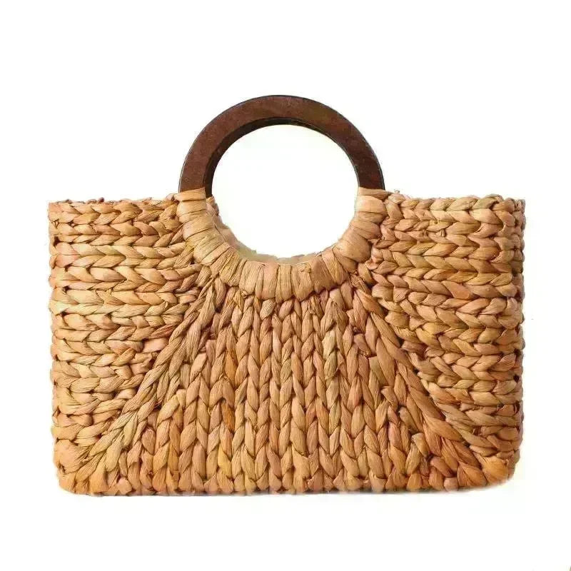 Borsa da spiaggia estiva intrecciata a mano Mori Colore solido grande capacità