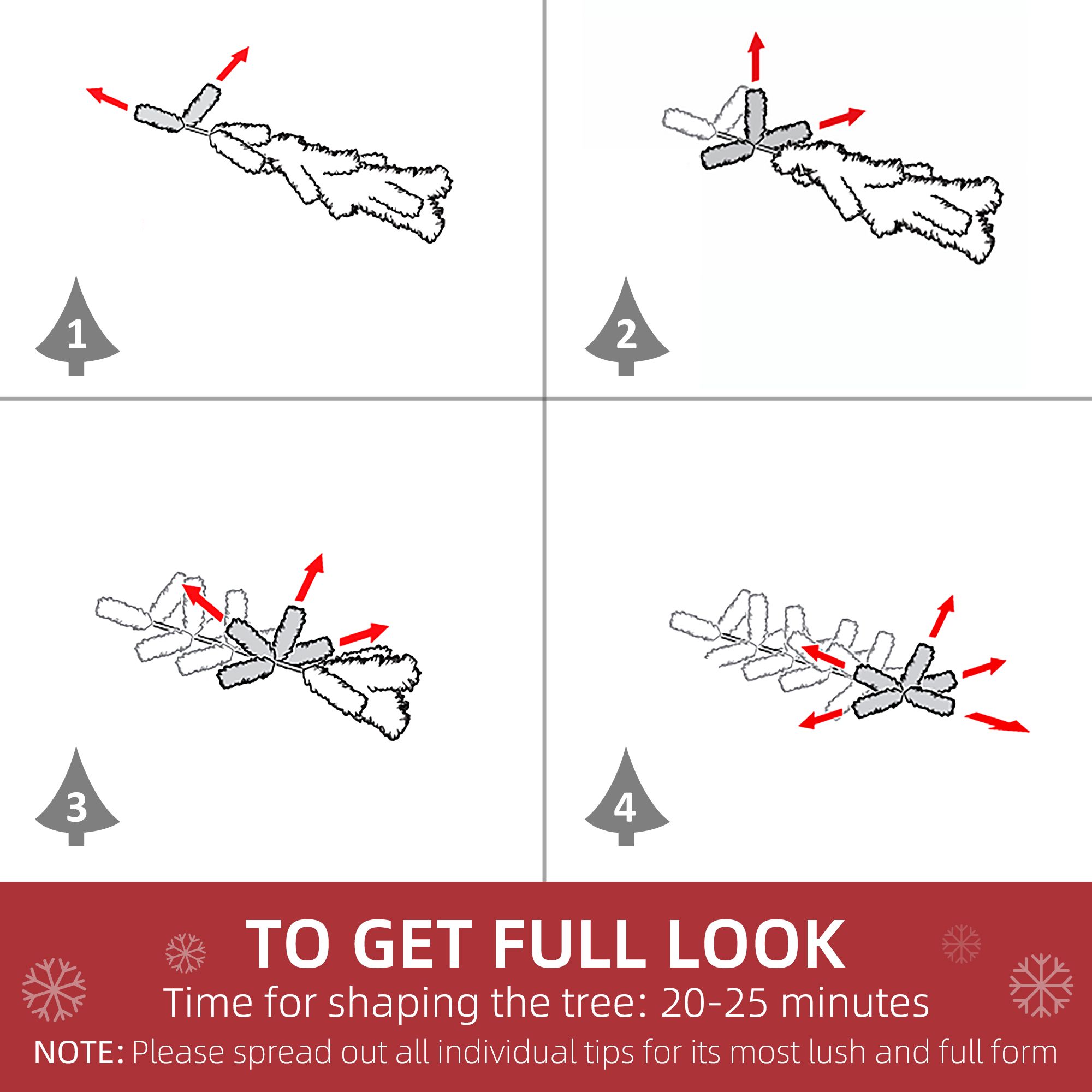 - White Christmas Tree Information: in order to get a full appearance, please spread out all individual tips to get the best possible look from the tree.
