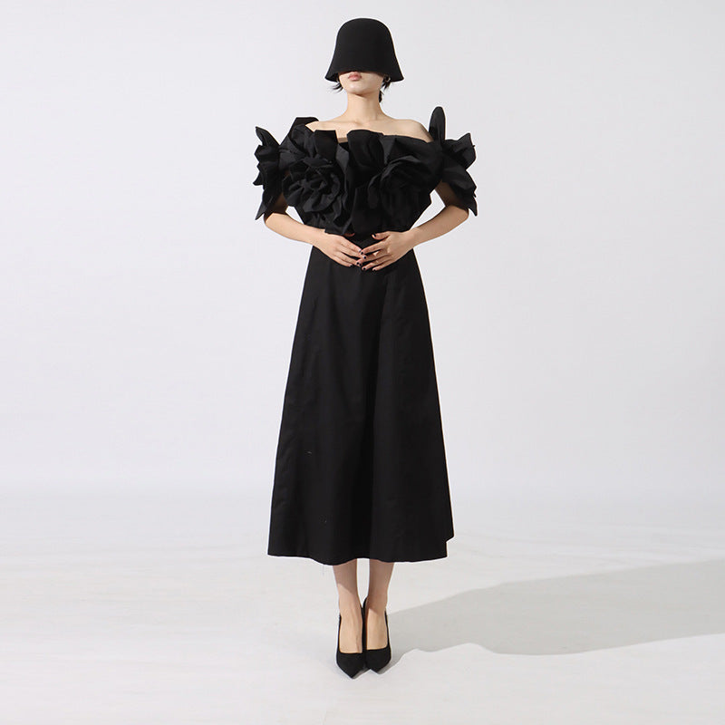 Fashion Heavy Industry Women's Three-dimensional Flower Design Dress