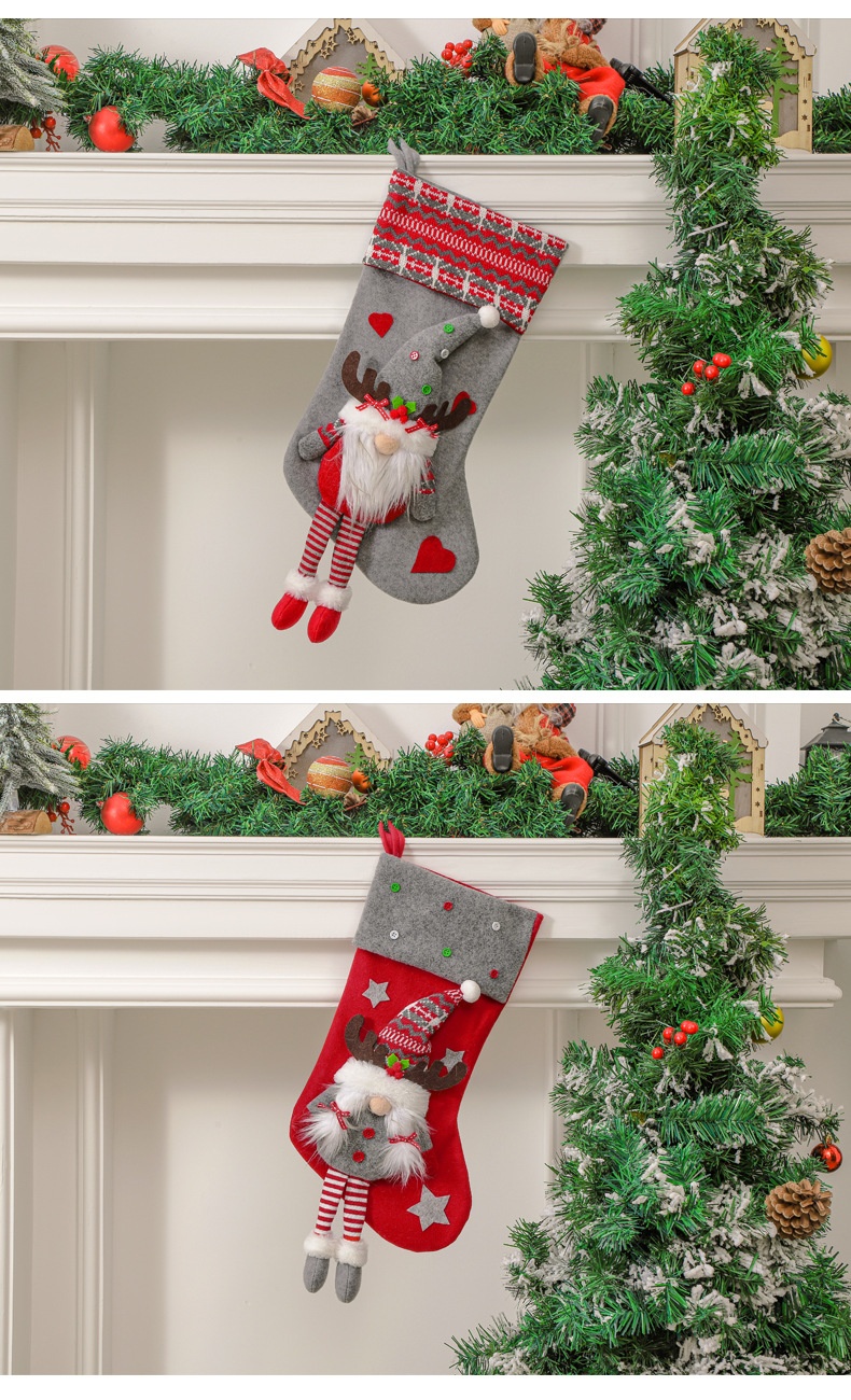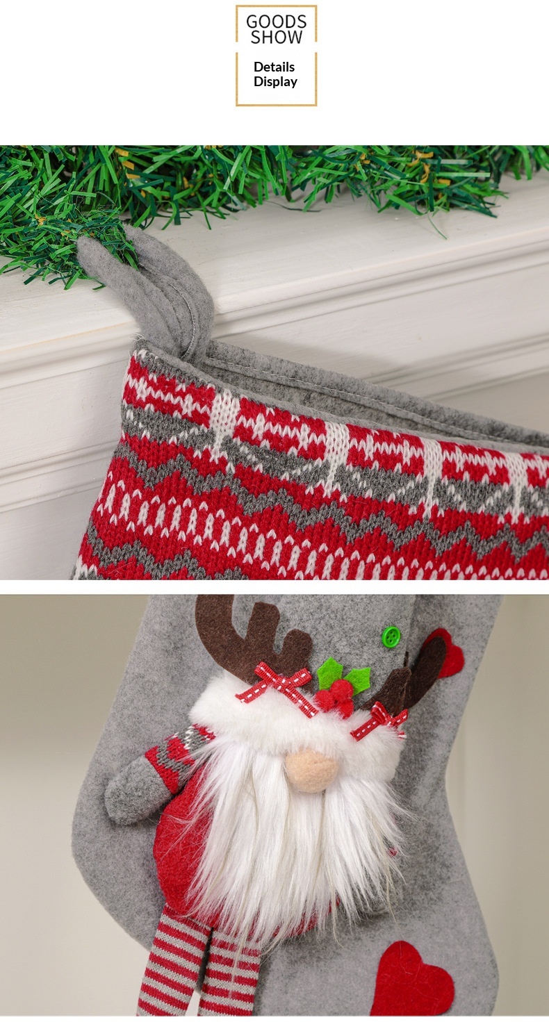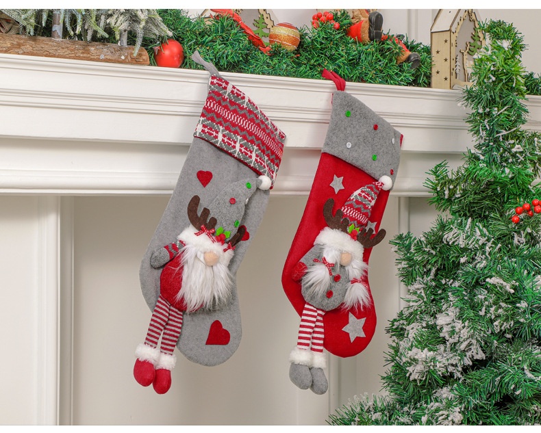 Color: In stock—gray antler Christmas stocking with beard design; in stock—red antler Christmas stocking with braid design
