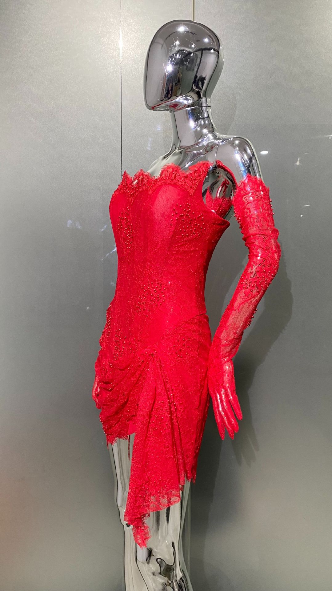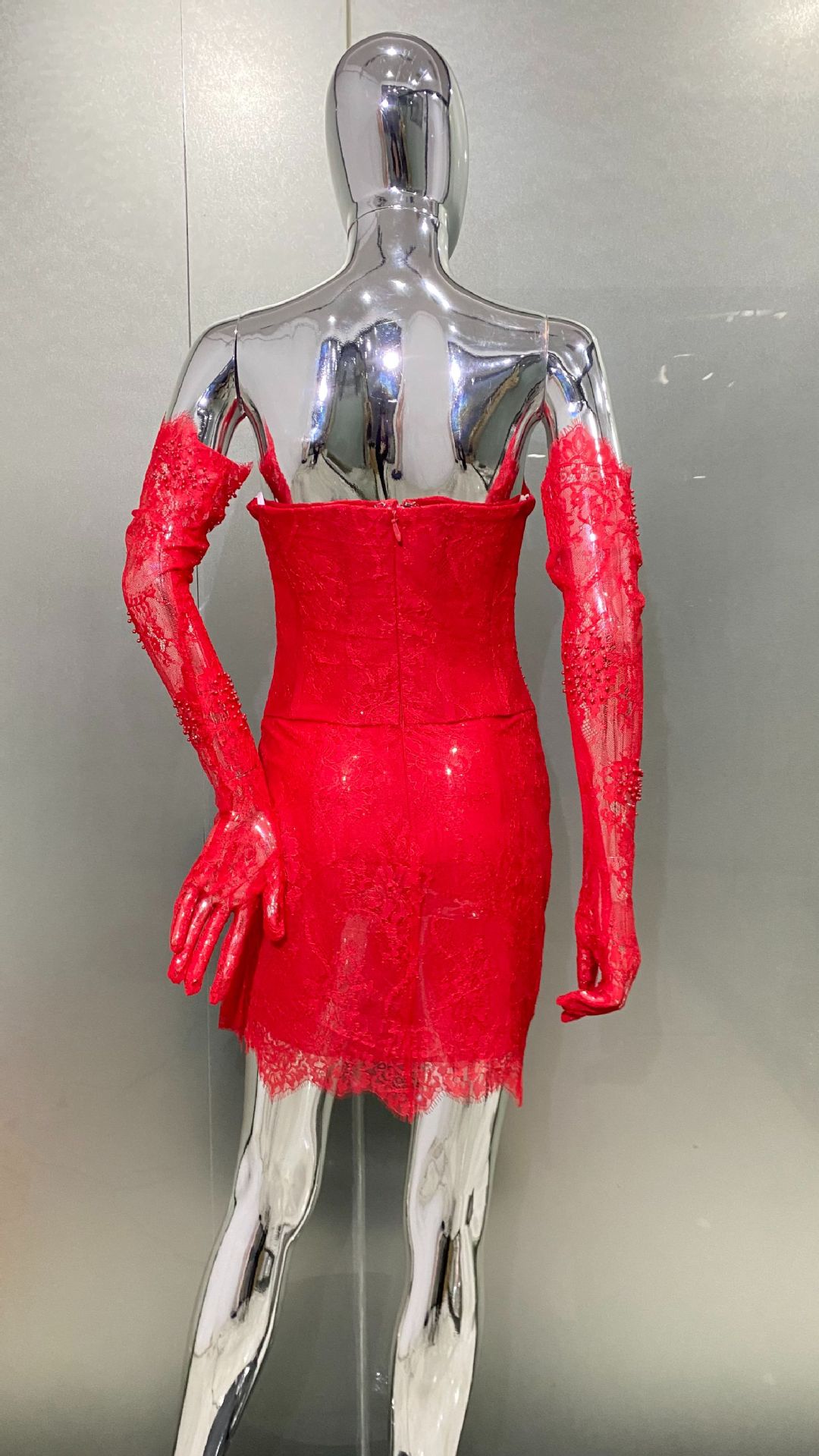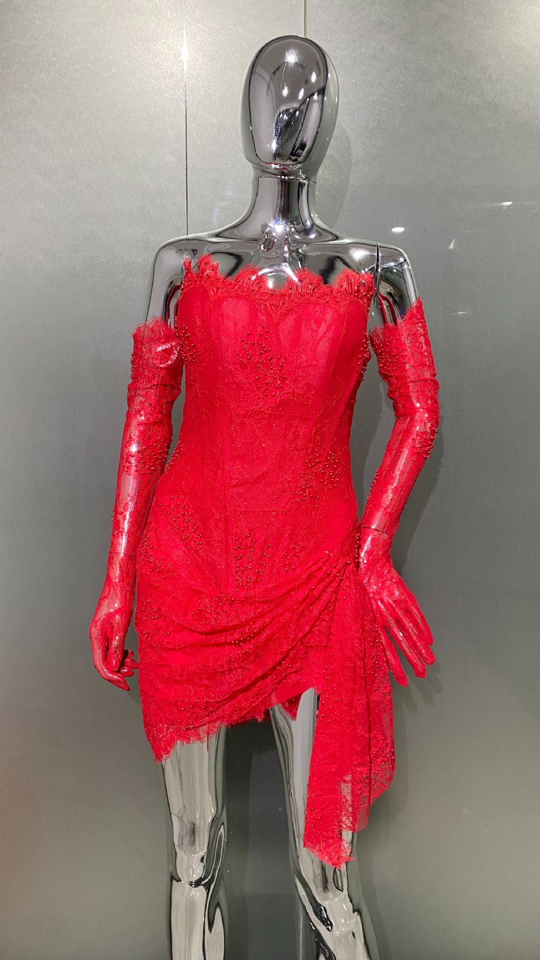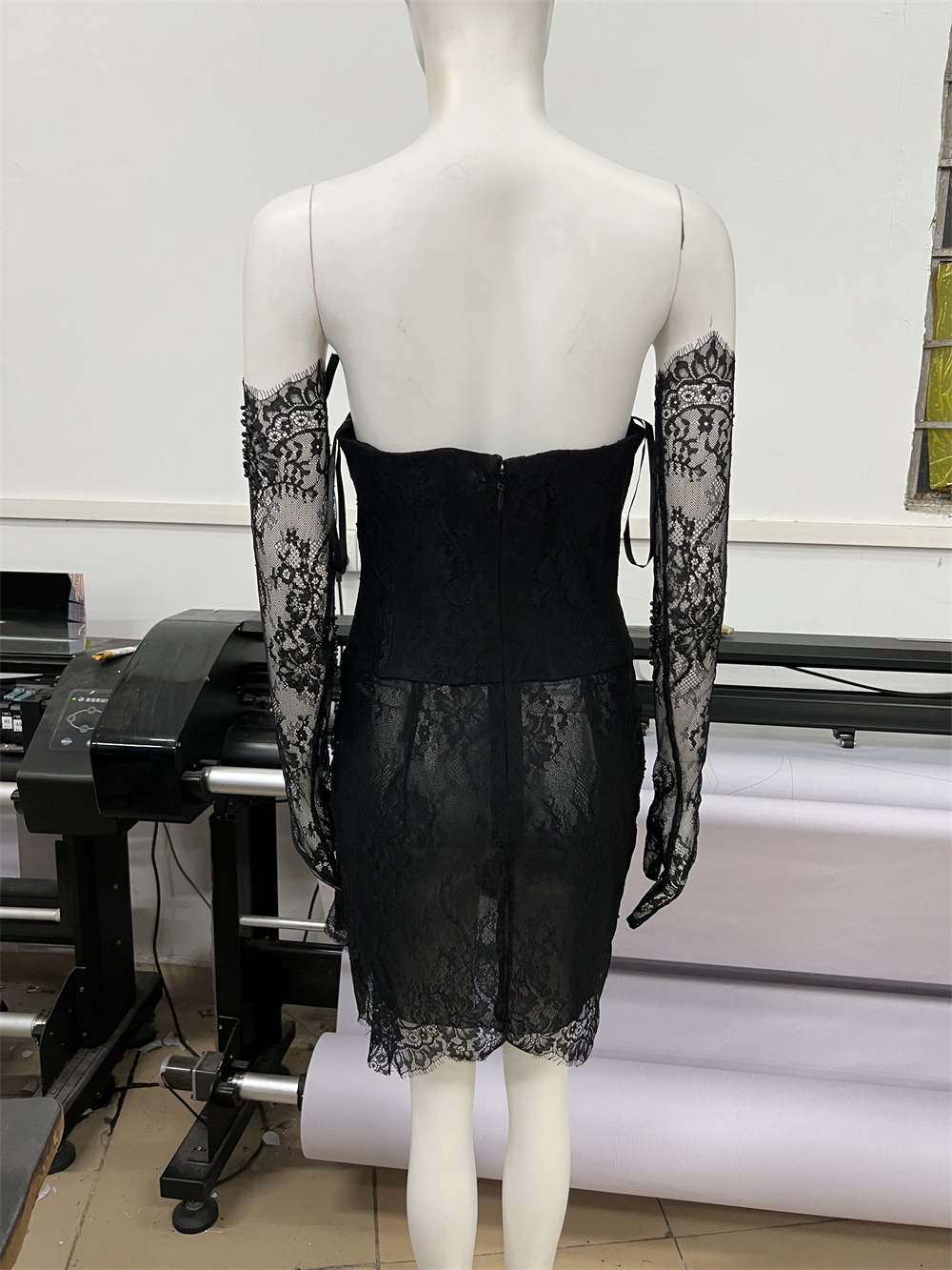 Fashionable Oversleeve Tube Top Lace Fashion Party Dinner Dress